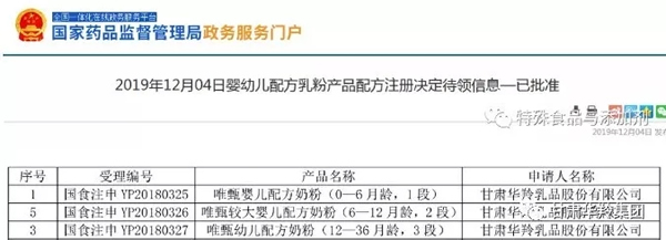 2019年12月4日,國家藥品監(jiān)督管理局發(fā)布最新一批通過注冊的嬰幼兒配方乳粉名單: