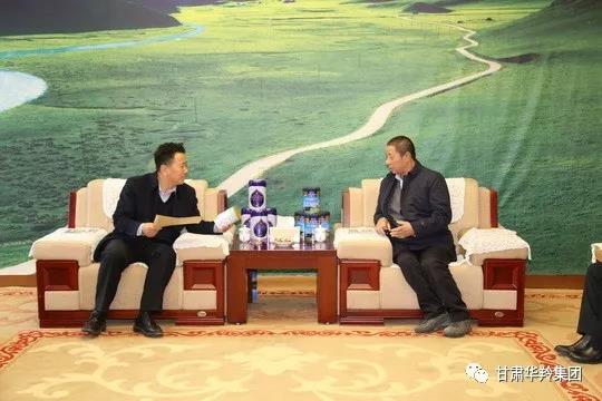 ▲甘南州政協主席徐強(左)與華羚實業集團董事長敏文祥(右)在座談