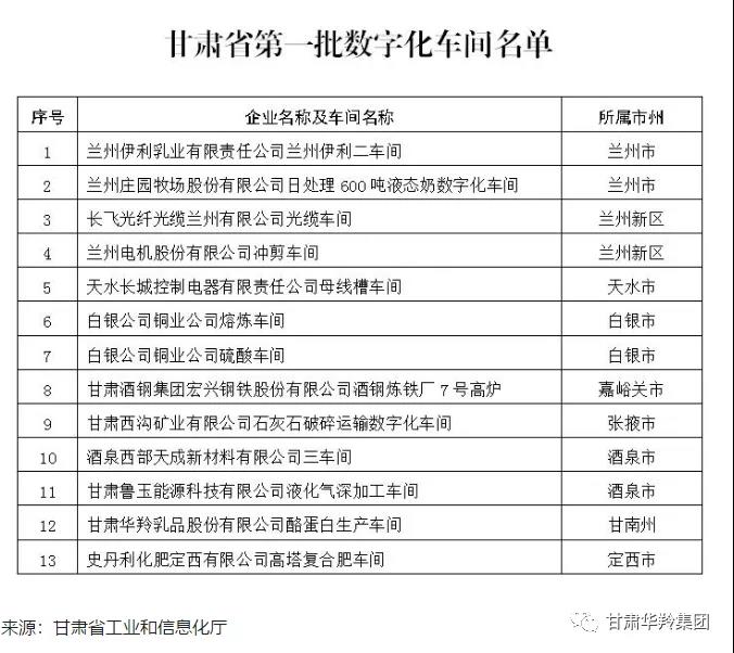 2020年12月15日,甘肅華羚乳品股份有限公司酪蛋白生產車間被省工業和信息化廳認定為全省第一批數字化生產車間。