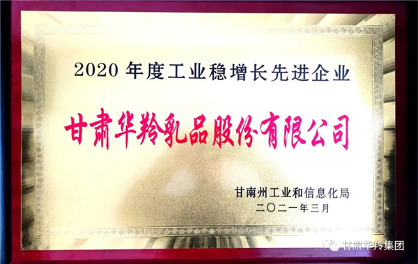 甘肅華羚乳品股份有限公司榮獲 “2020年度工業(yè)穩(wěn)增長先進企業(yè)”榮譽稱號!