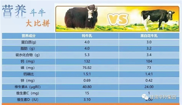 牦牛奶的氨基酸、鈣、維生素A含量分別比普通牛奶高15%、15%和6%。微量元素中,牦牛奶中所含的鐵是一般牛奶的9.8倍、鋅含量是一般牛奶的3倍、鈣含量是一般牛奶的1.13倍。牦牛奶中含有的免疫球蛋白是普通牛奶所缺少的,長(zhǎng)期飲用會(huì)有助于提高人體免疫力,牦牛奶也因此被譽(yù)為"奶中極品"。