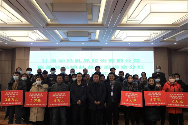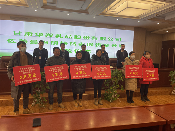 2022年3月1日,甘肅華羚乳品股份有限公司和佐蓋曼瑪鎮(zhèn)共同舉行2021年度農(nóng)牧村扶貧參股資金分紅發(fā)放儀式,華羚乳品公司為佐蓋曼瑪鎮(zhèn)農(nóng)牧民群眾發(fā)放扶貧參股資金49.04萬元,農(nóng)牧民群眾領(lǐng)到分紅款后臉上洋溢著喜悅的笑容。