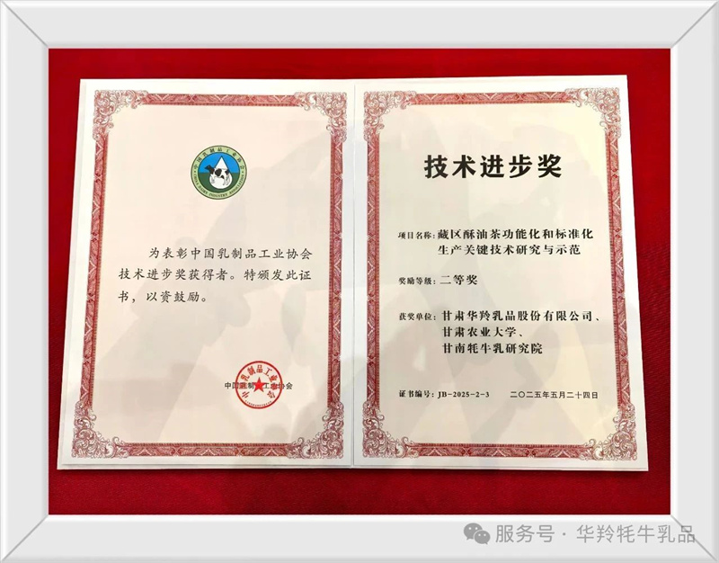 年會的議程當中,2025年度中國乳業(yè)科技系列獎項的頒發(fā)備受矚目。其中,甘肅華羚乳品股份有限公司研發(fā)的《藏區(qū)酥油茶功能化和標準化生產(chǎn)關(guān)鍵技術(shù)研究與示范》項目,榮獲技術(shù)進步二等獎,展現(xiàn)出企業(yè)在研發(fā)創(chuàng)新領(lǐng)域的卓越實力。該項目作為甘肅省科技重點研發(fā)計劃項目,凝聚著企業(yè)對傳統(tǒng)藏區(qū)特色食品現(xiàn)代化轉(zhuǎn)型的深度思考與持續(xù)探索。